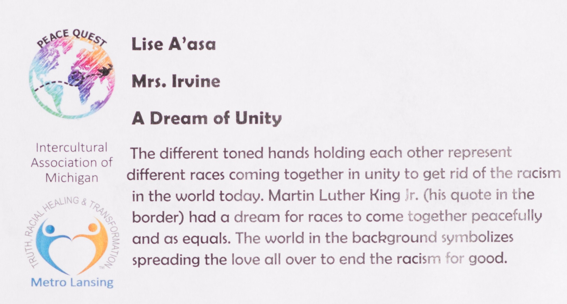 **Celebrating International Day of Peace during September 21-October 24** _______________________________________________________________________ **COORDINATED BY GREATER LANSING UNITED NATIONS ASSOCIATION** WWW.GLUNA.ORG